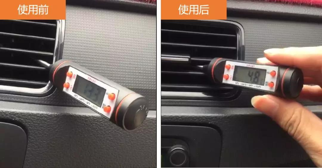 ▲施工車輛,原本最低溫度為13度的空調(diào)系統(tǒng),加注完成后,溫度迅速降低,效果顯著。