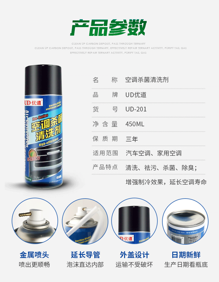 采用最新高效環(huán)保配方,具有清洗、除味、滅菌功能。能有效快速清除汽車蒸發(fā)器及風(fēng)道中的各種異味,去除空調(diào)冷卻系統(tǒng)的塵垢、細(xì)菌,含有高效殺菌、消毒、除臭、清潔功能,免拆清洗、空調(diào)進(jìn)氣道--鼓風(fēng)機(jī)---蒸發(fā)器等部件,全面徹底將空調(diào)通風(fēng)系統(tǒng)清洗干凈。改善空調(diào)工作條件,提供空調(diào)工作效率。