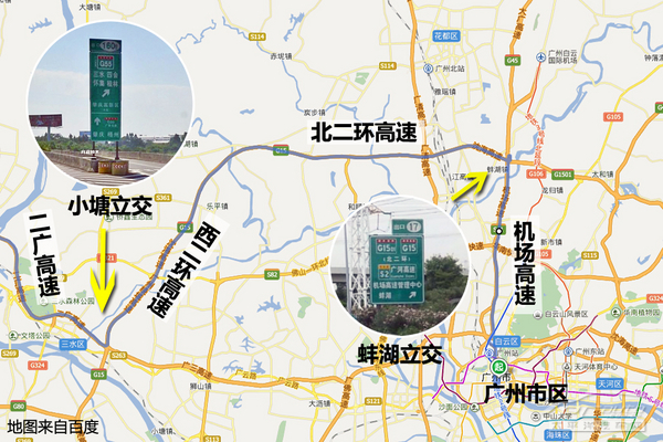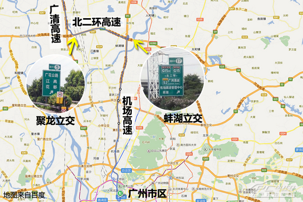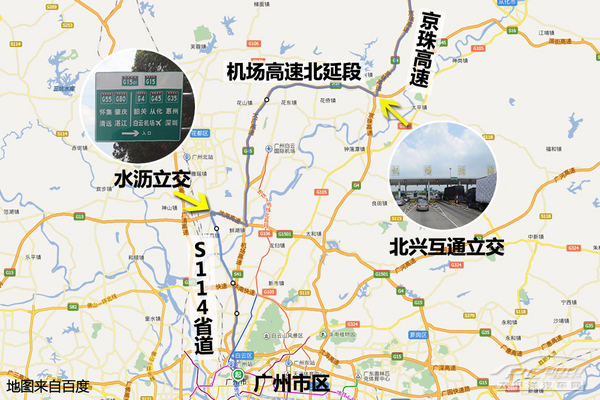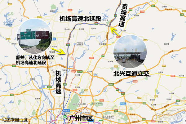 機(jī)場高速為雙向6車道及8車道設(shè)計(jì),可容納的車流量遠(yuǎn)大于廣清高速。因此北上出城的朋友不妨繞道機(jī)場高速,至北興互通立交處再轉(zhuǎn)至京珠高速,即可避免出城初段的擁堵。
