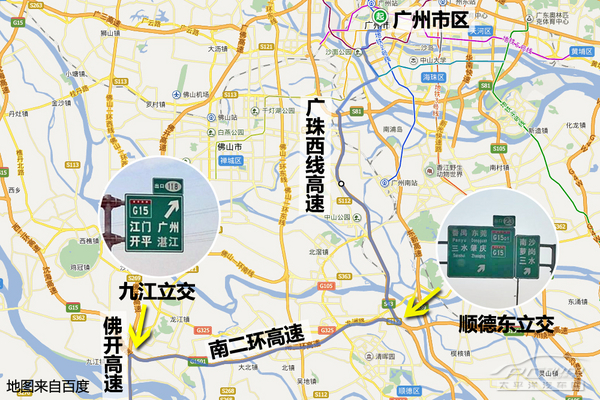 (往江門方向)方案:廣珠西線高速—南二環(huán)高速(九江互通立交)—佛開高速