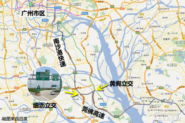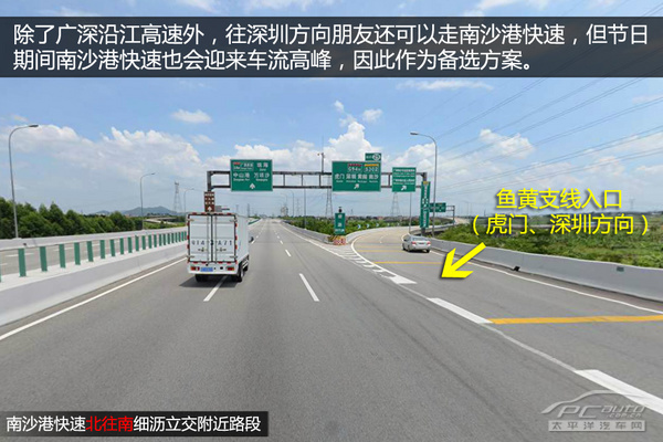 (往深圳方向)方案二:南沙港快速路(細(xì)瀝立交)—魚黃支線(黃閣站)—廣珠東線高速(亭角立交)—莞佛高速—廣深高速