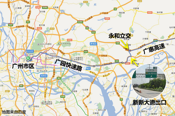 ?。ㄍ葜莘较颍┓桨福簭V園快速路—新新大道(北行)—(永和站)廣惠高速