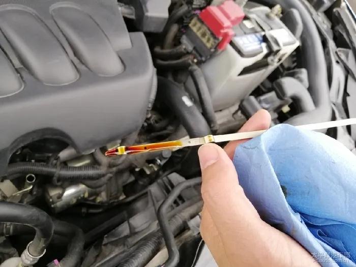 把車放在平坦的地方,待車涼后拔掉機油尺,用擦布擦干凈再插進去,插到底后拔出來查看,機油位在油尺刻度最小上限/最大上限范圍內即可,不可越過刻度區(qū)間(通常機油尺上有兩個小點點,在兩點之間就可以)。