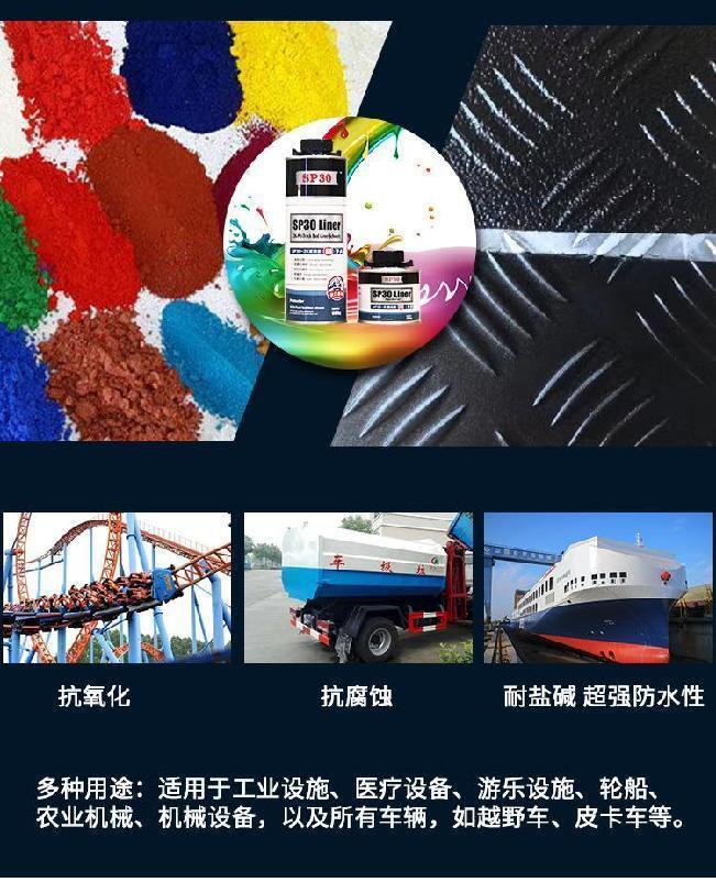 2.越野車輛:在越野車輛外部,特別是下部和保險(xiǎn)杠等區(qū)域,使用猛禽漆可以提供額外的保護(hù),抵抗巖石和碎石的撞擊。